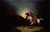 Assiniboin Indians Running a Buffalo, oil on canvas, 18 x 29 inches,