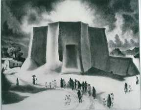 Gene continued to produce prints of California, and during visits to Taos she captured scenery, portraits and regional ceremonies, including Native American and Penitente rituals. She also completed paintings in both oil and watercolor. The quality of Gene's work was well recognized, and she was chosen as one of three artists to represent New Mexico at a Paris exhibition in 1935. She also completed several prints for the Works Progress Administration. In 1950, she was elected an Associate Member of the National Academy of Design. Since all new members were required to submit a portrait, she chose to do her own, entitled "Self Portrait and the Golden Gate." She was named a National Academician in 1972.