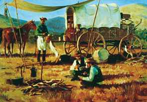 from Denver in a horse-drawn wagon on their way to New Mexico. The wagon