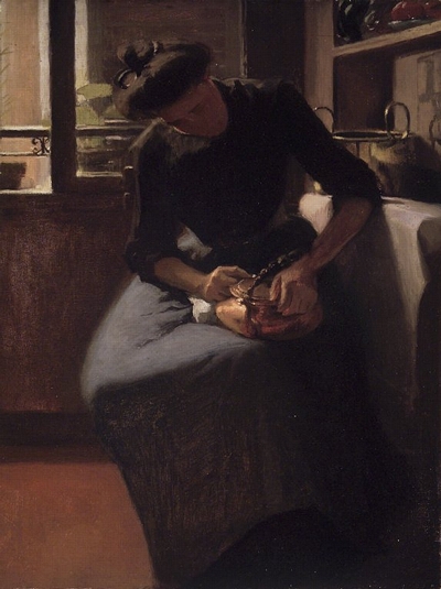 (above: Minerva J. Chapman (1858-1947, Woman Polishing a Kettle, c.1910-14, oil on canvas, 24 x 18 in., Brooklyn Museum, gift of Mr. and Mrs. Morse G. Dial, Jr. Public domain, via Wikimedia Commons)